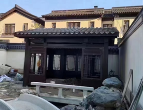這個項目是湖北黃崗市的一個村里,定制的是一套古建小青瓦防腐木長廊,尺寸是長度11米,寬度為2.8米,總面積為30個平方米左右。陳總在網(wǎng)上找到我們